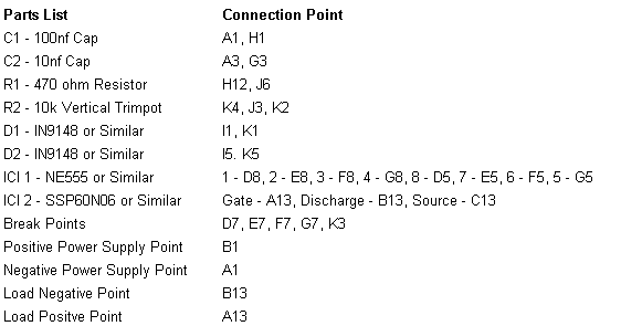 been built on a Veroboard of approx. 30mm x 30mm. The following is the